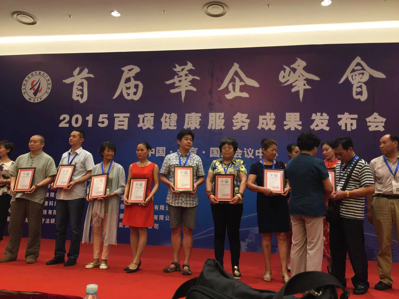 笔动功获得成功。参加2015百项健康服务成果发布会,在北京国家会议中心隆重召开。“首届华企峰会”笔动功为入选习练,应用笔动功项目。颁发指定发布项目证书、铜牌。会议圆满结束了!