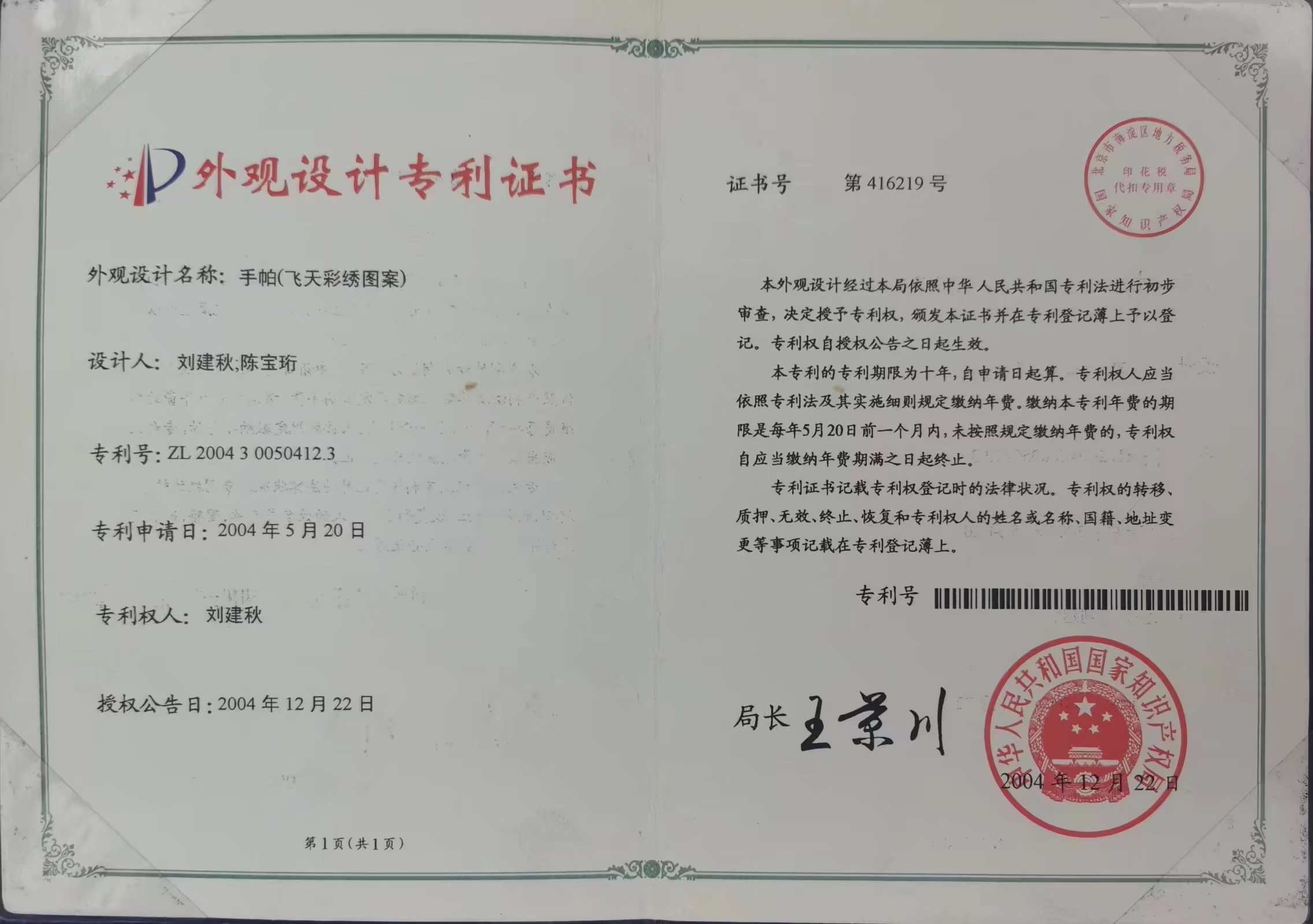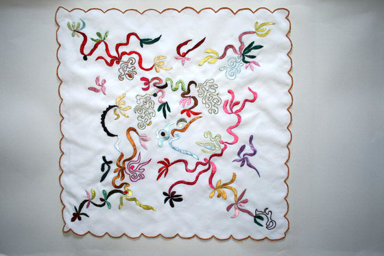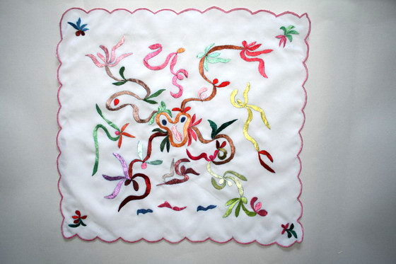 刘建秋接收信息手刺绣(手帕)