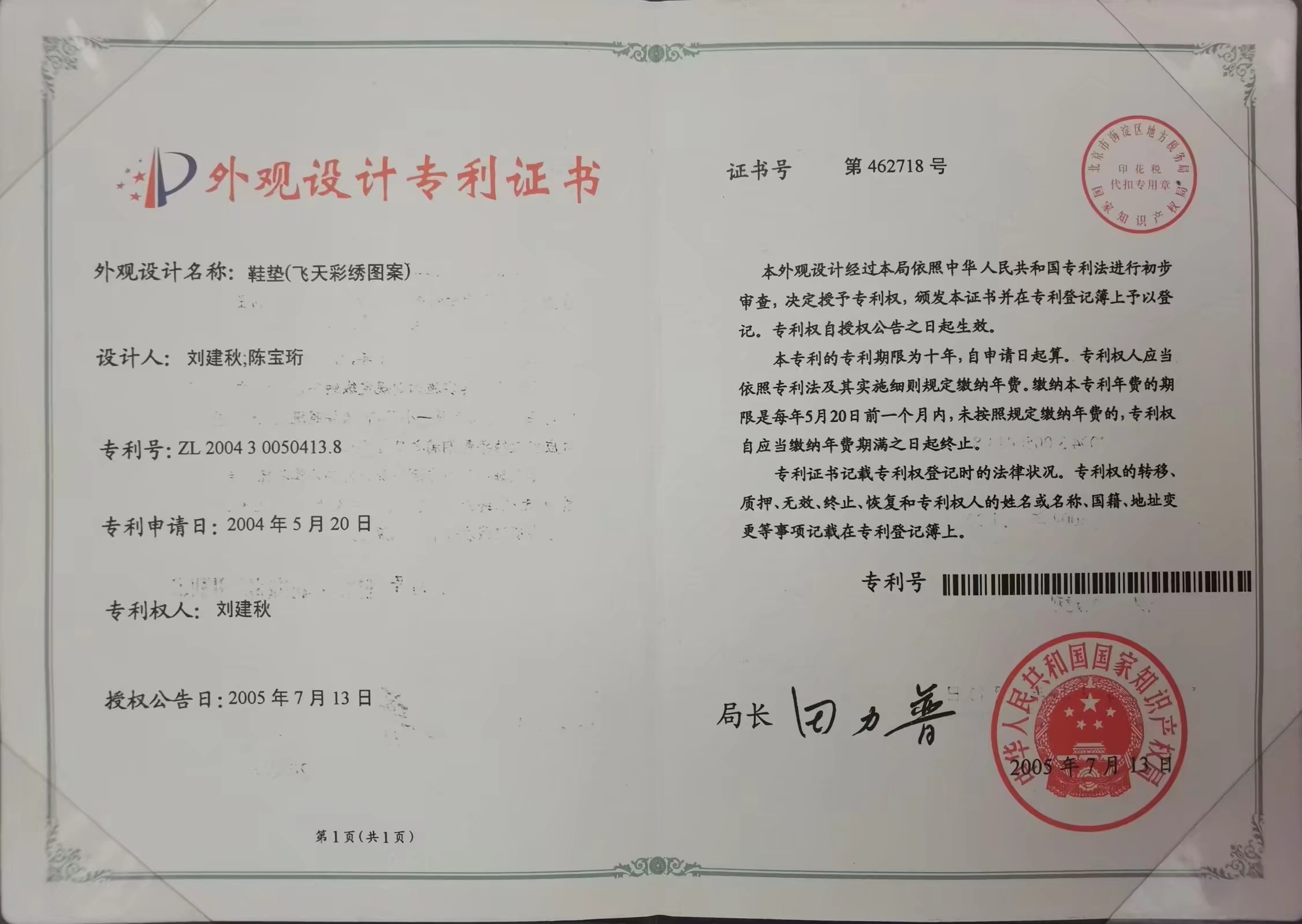 刘建秋接收信息手刺绣(鞋垫)