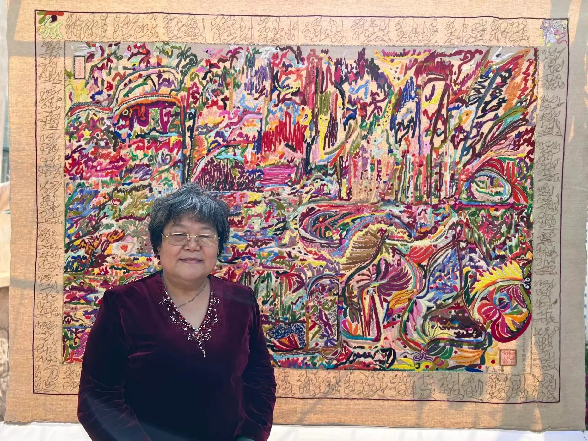 刘建秋接收信息手刺绣(墙壁画)