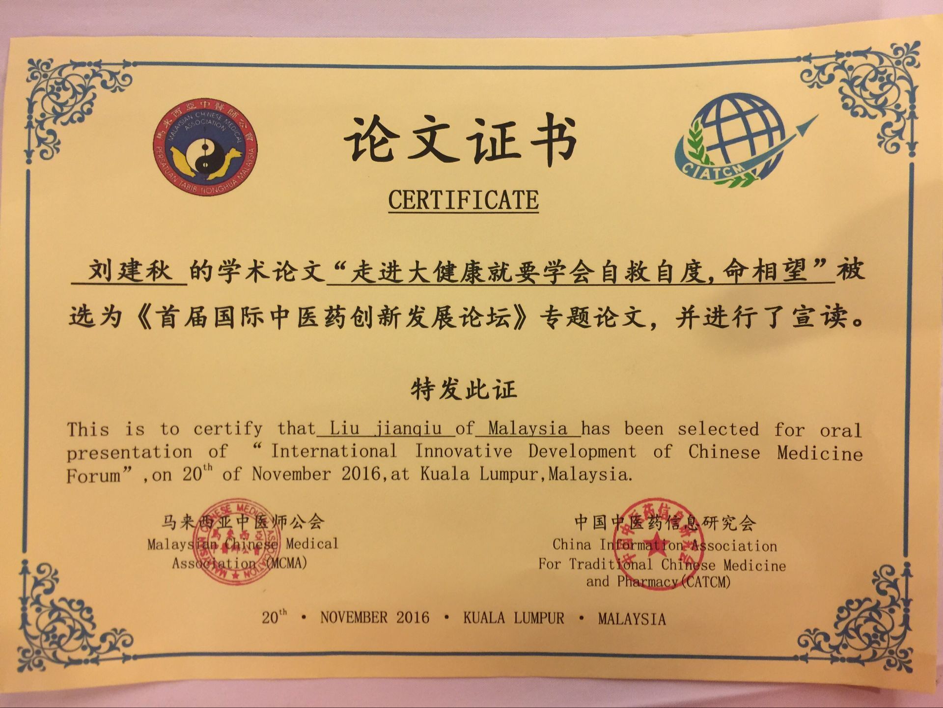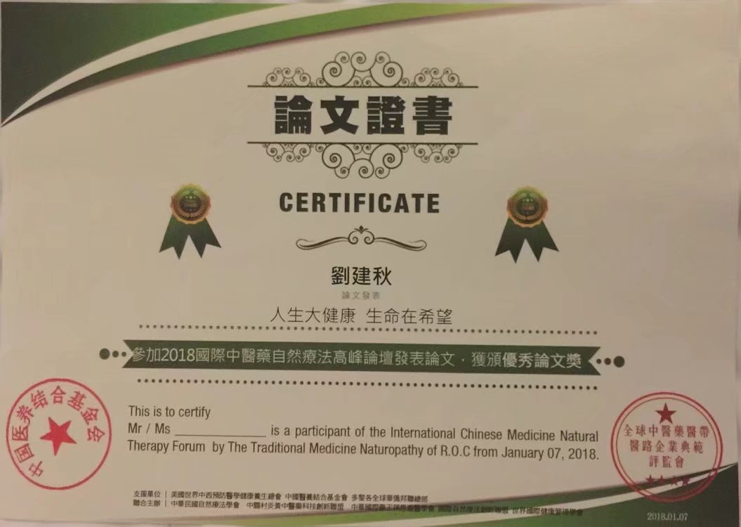 创新未来刘建秋笔动功“非药物疗法,自然疗法,适宜技术,养生,保健与健康,治未病等综合性质疗效”成果(作者:刘建秋)